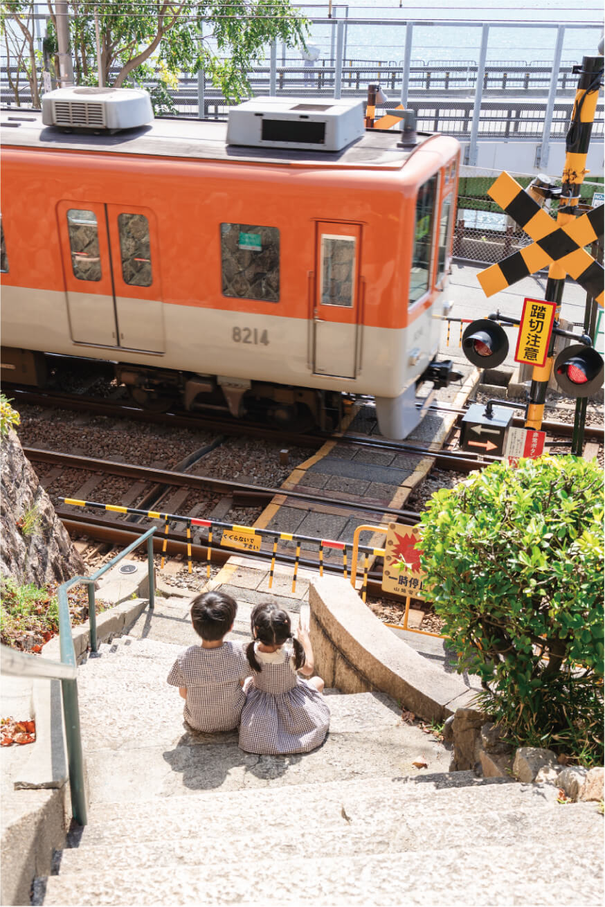 とても素敵なくらしの中の一コマですね。オレンジの電車の音が聞こえ、寄り添ったお子さんの笑顔が見えてくるようです。