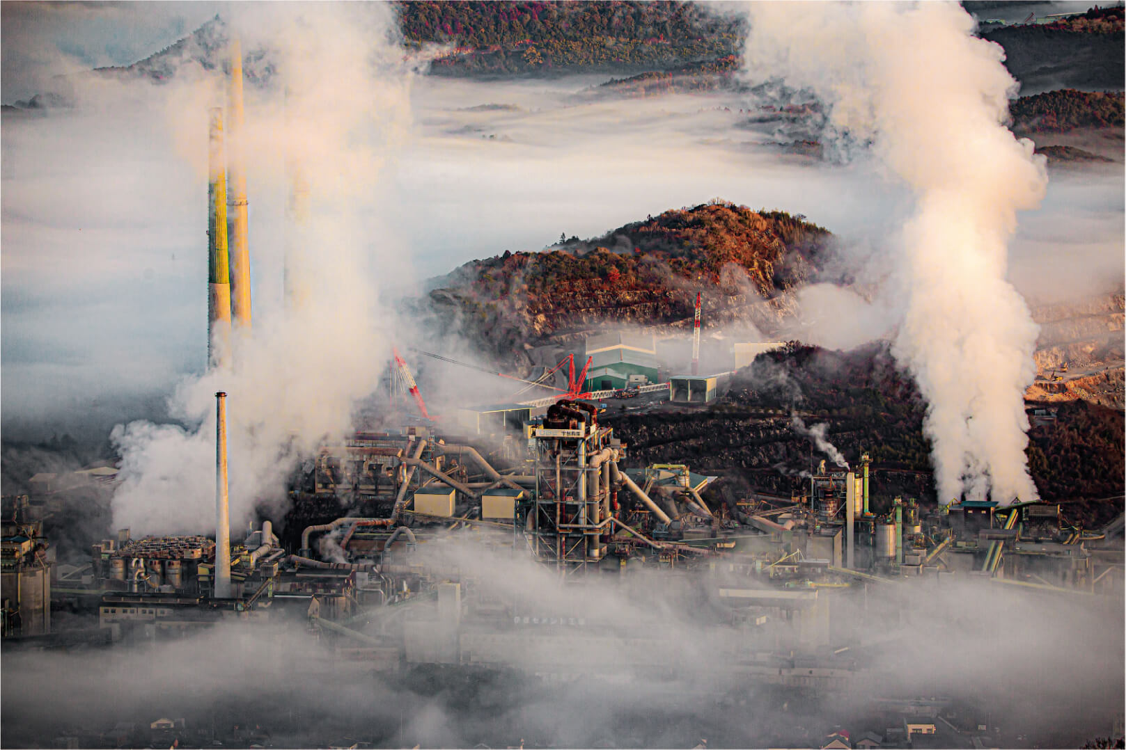 風景と工場が共鳴し合い、まるで壮大なポートレートのように“鉄の存在”を美しく描き出しています。